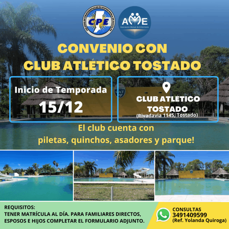 Convenio del CPE con Club Atlético Tostado – Formulario 09 Dic 📝 Formulario: https://docs.google.com/forms/d/e/1FAIpQLScgLAyesHOUQy1OHJkbD3A7vnYY0641pb1wtogNhwJ3oUaroA/viewform?usp=dialog